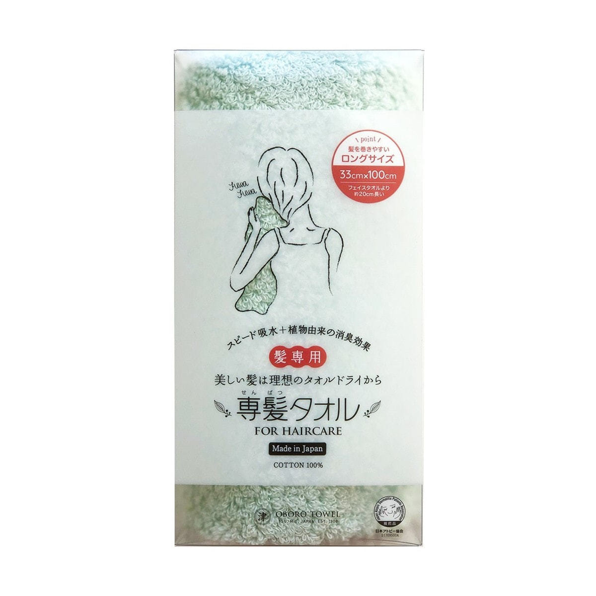 専髪タオル グリーン(33×100cm)《日本アトピー協会推薦品》